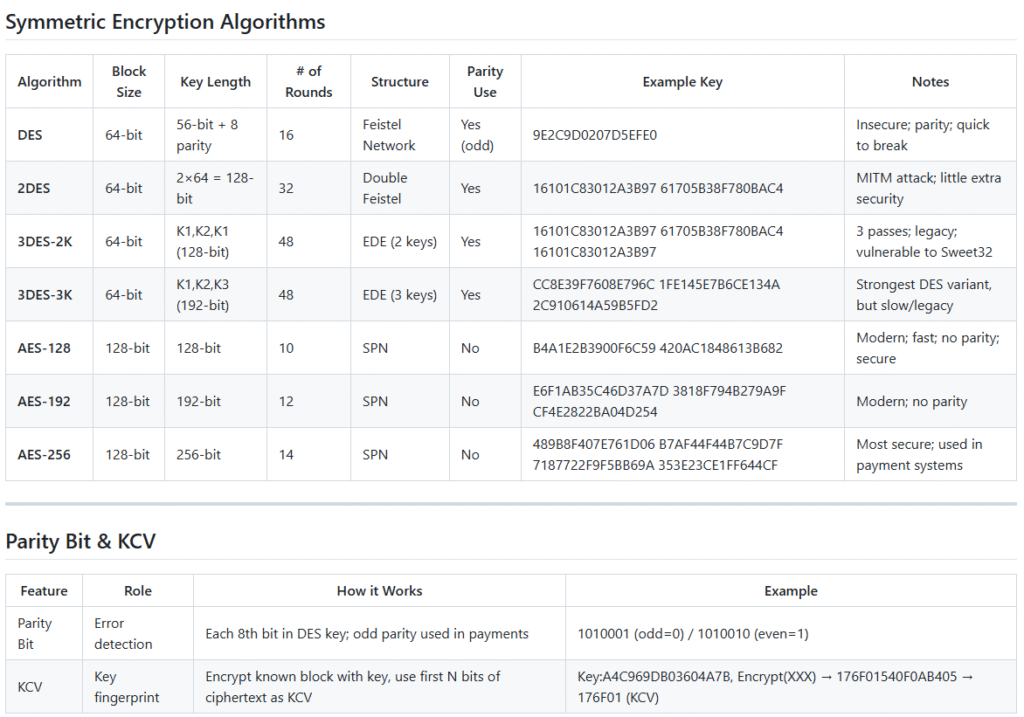পেমেন্ট সিস্টেমে সাধারণত odd parity ব্যবহৃত হয় (যেমন HSM, Thales, Atalla)।